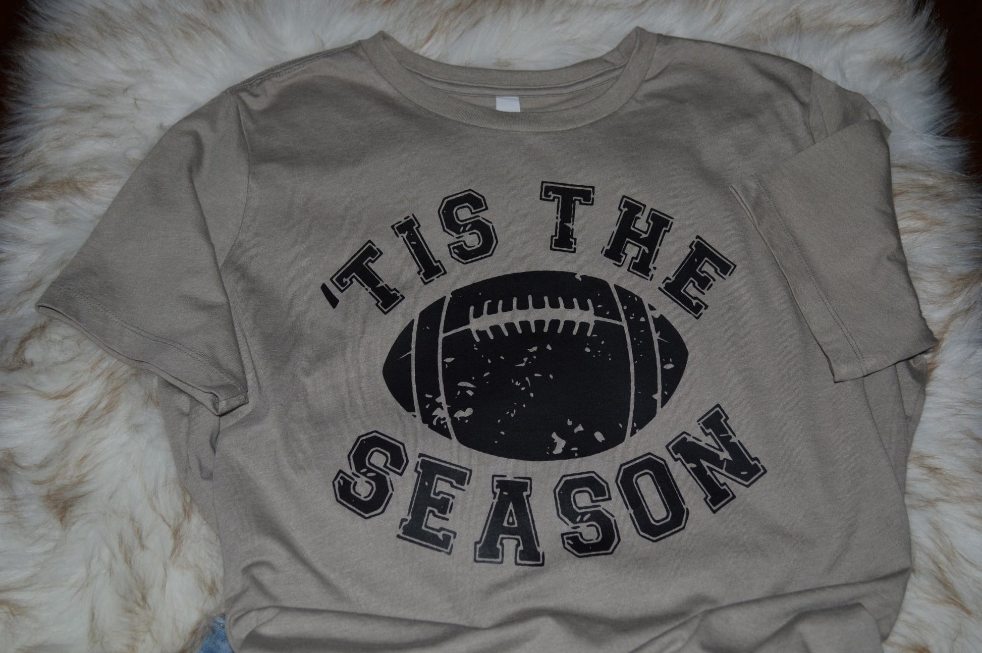 "Tis The Season" Football- Ladies Medium Grey Short Sleeve Bella + Canvas Shirt