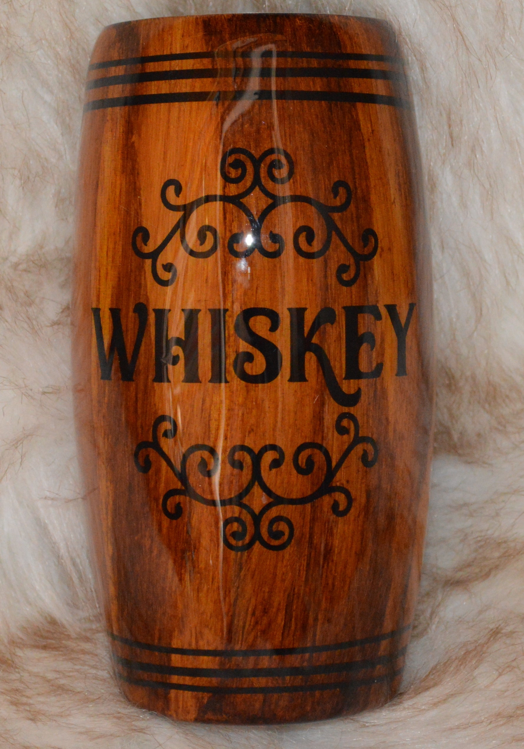 Stainless steel tumbler with wood grain and vinyl. Item comes with sliding lid and straw.